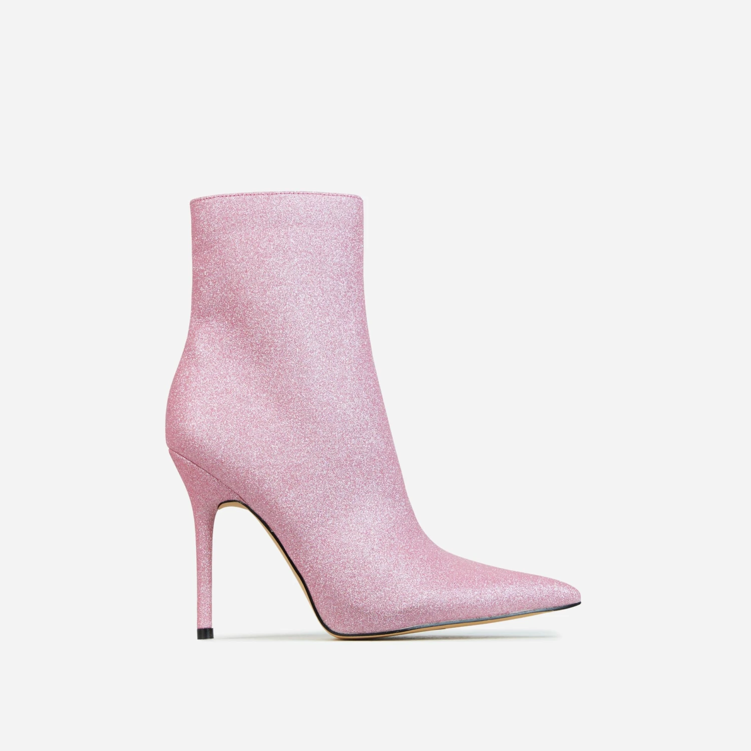 Girl, get yourself noticed in these statement boots. Featuring a pink glitter material, with a pointed toe, a stiletto heel and an ankle length.