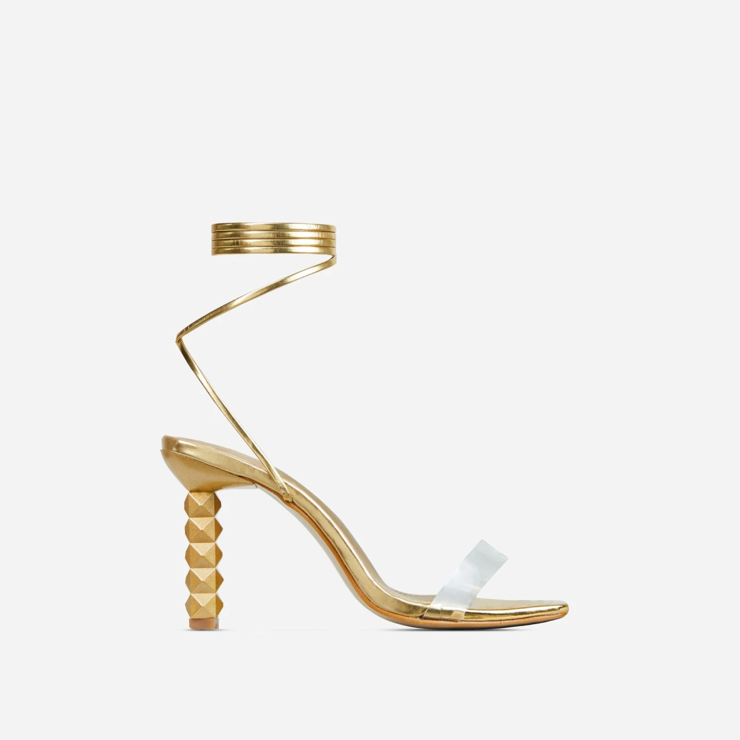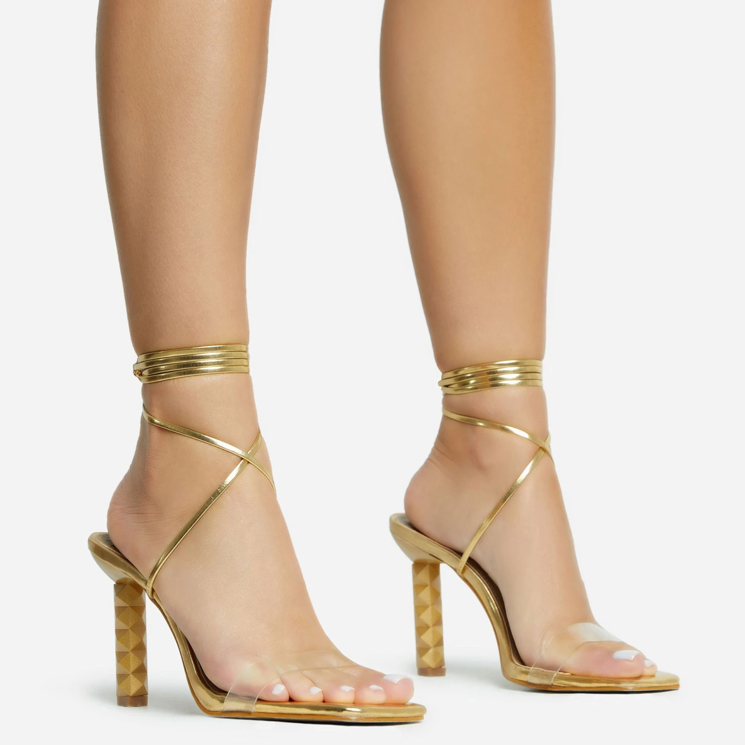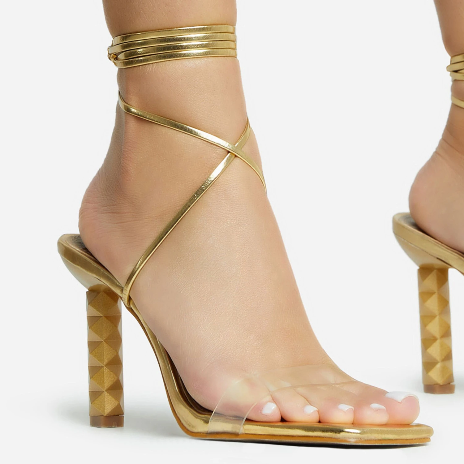 EGO Truth-Or-Dare Beaded Strap Detail Square Toe Flared Block Heel In Green Faux Leather