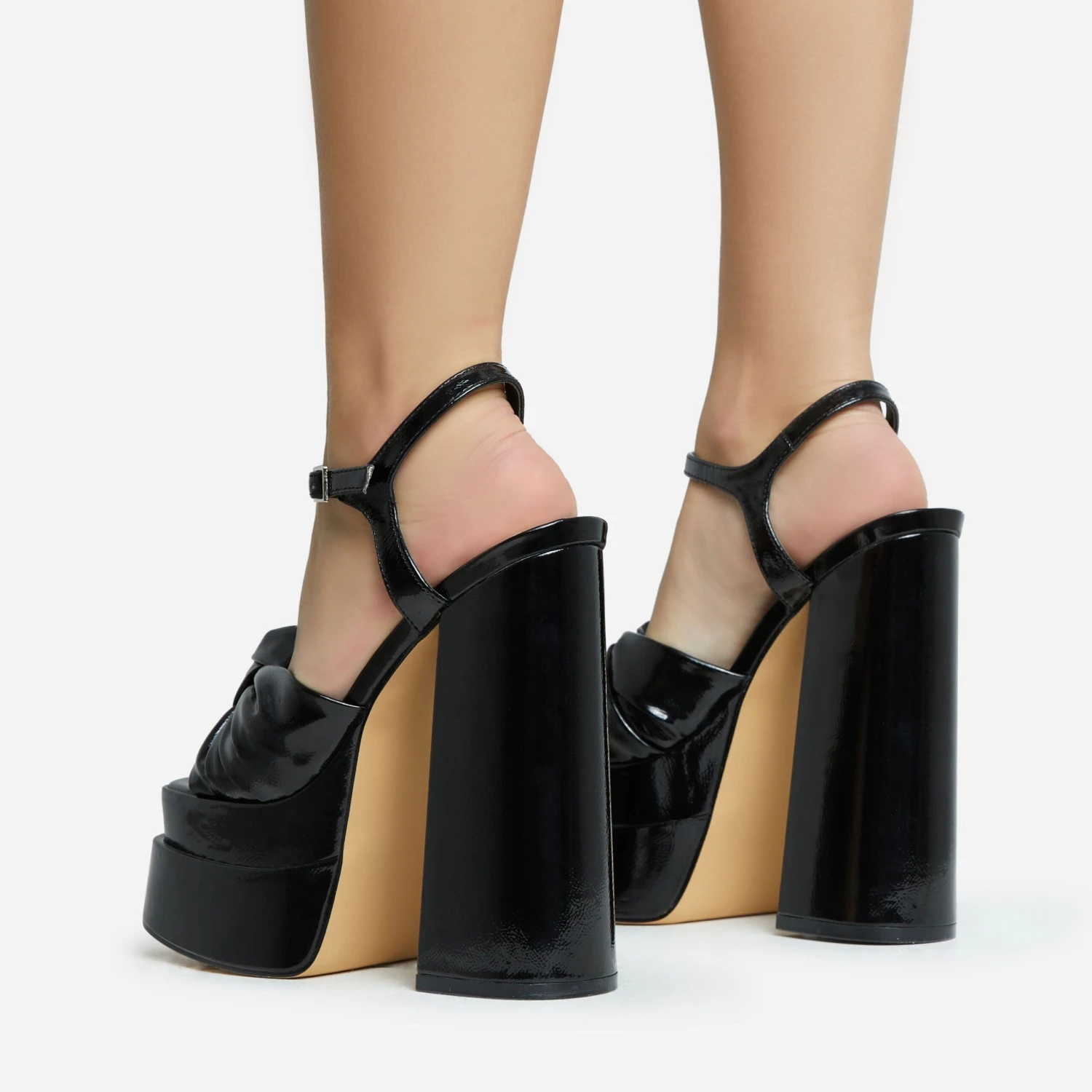 EGO Draper Knotted Detail Platform Block Heel In Black Faux Leather