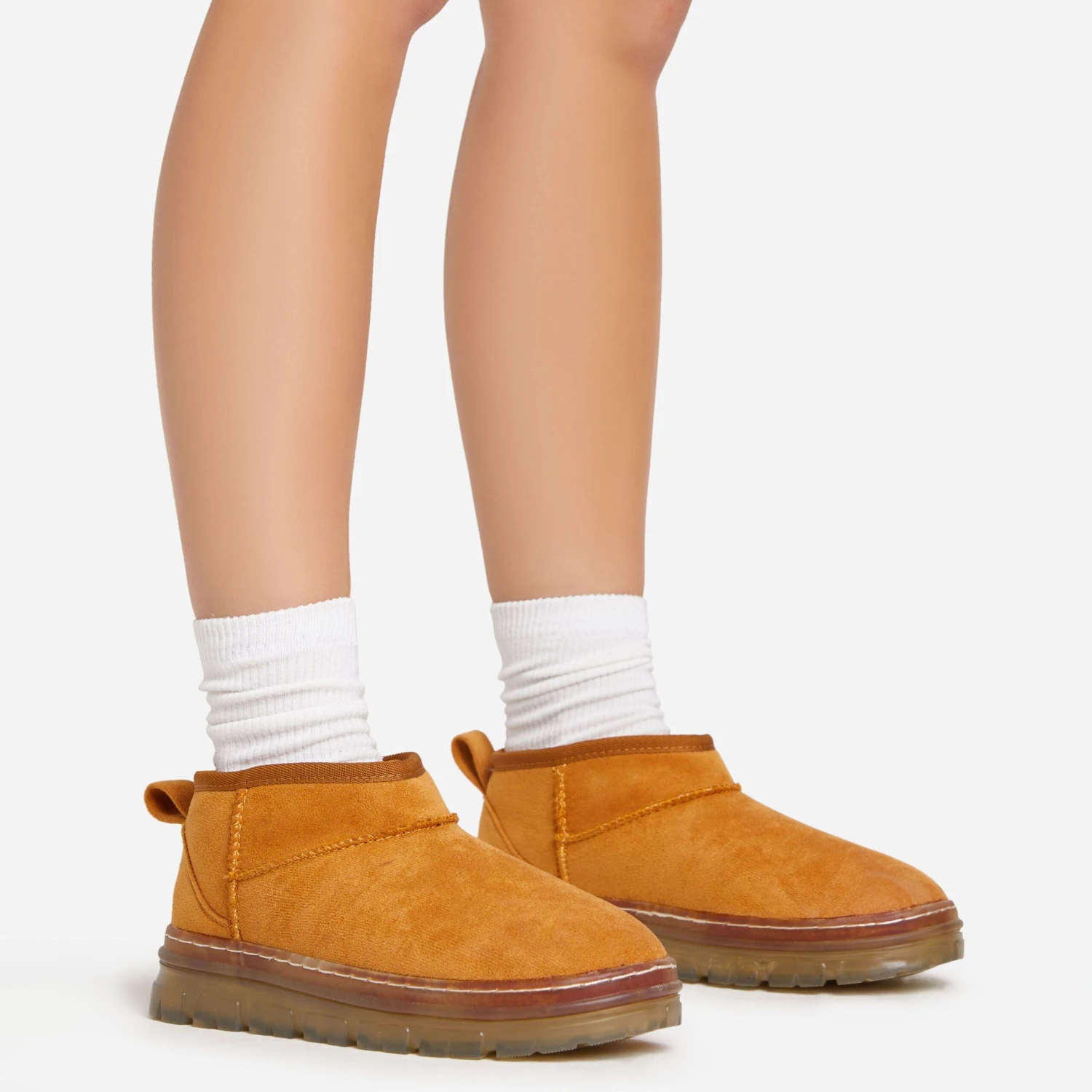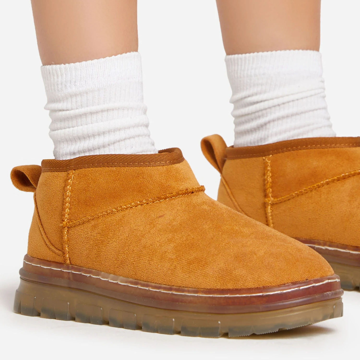 Get that blogger worthy look with these boots girl. Featuring a chestnut faux suede material, faux fur lining, a rubber sole and an ankle length.