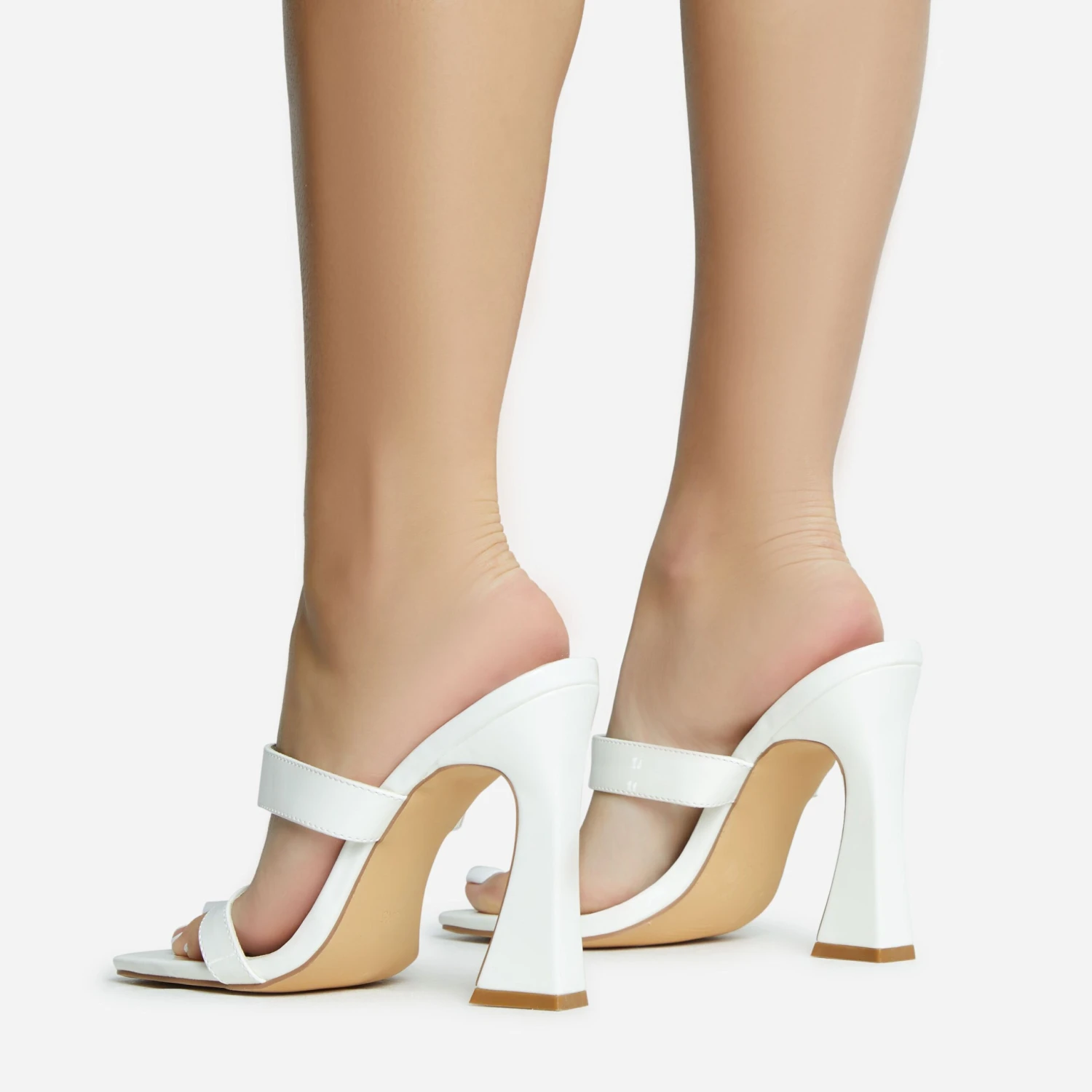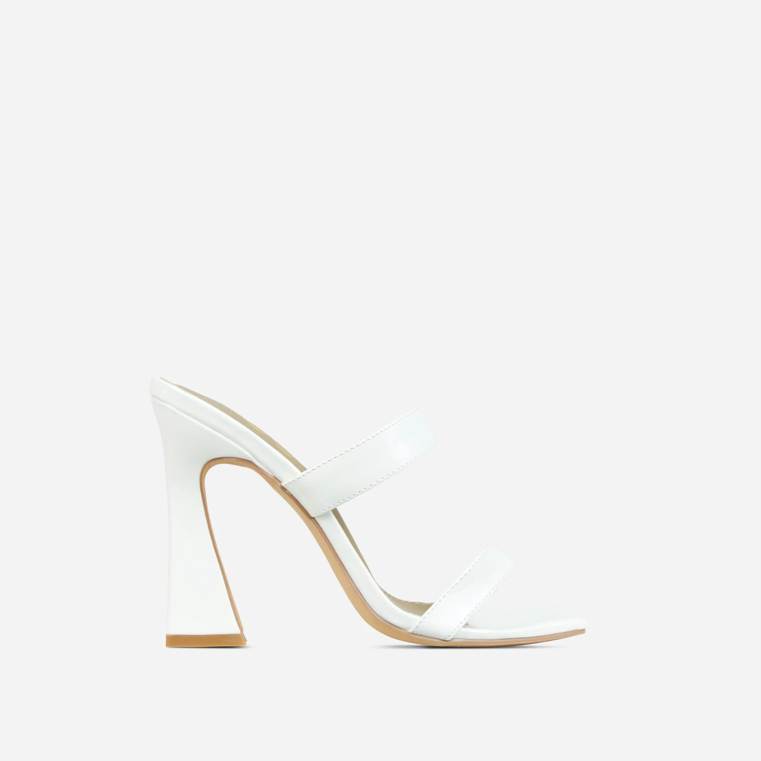 Hit refresh on your new season look with these mules girl. Featuring a white patent material, a flared block heel, a double strap detail and a square toe.