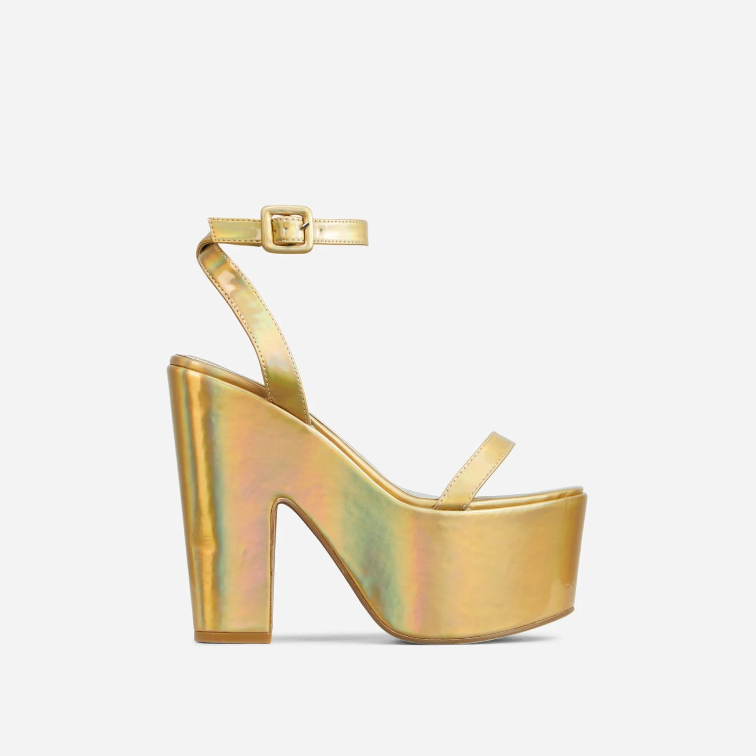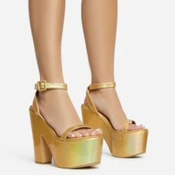 EGO Flamingo Lace Up Faux Feather Detail Square Toe Metallic Thin Block Heel In Red Faux Leather