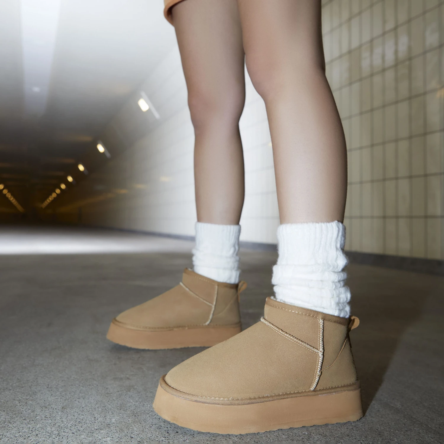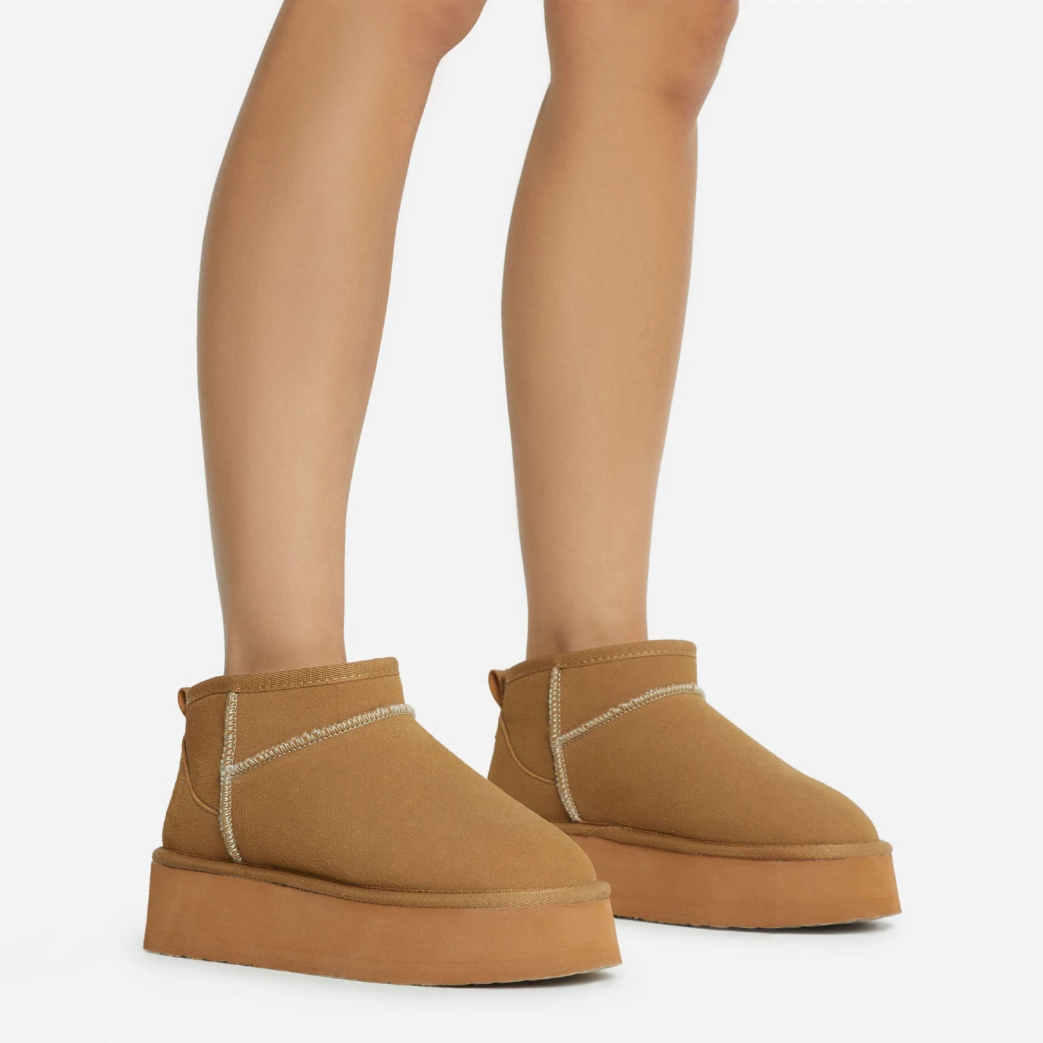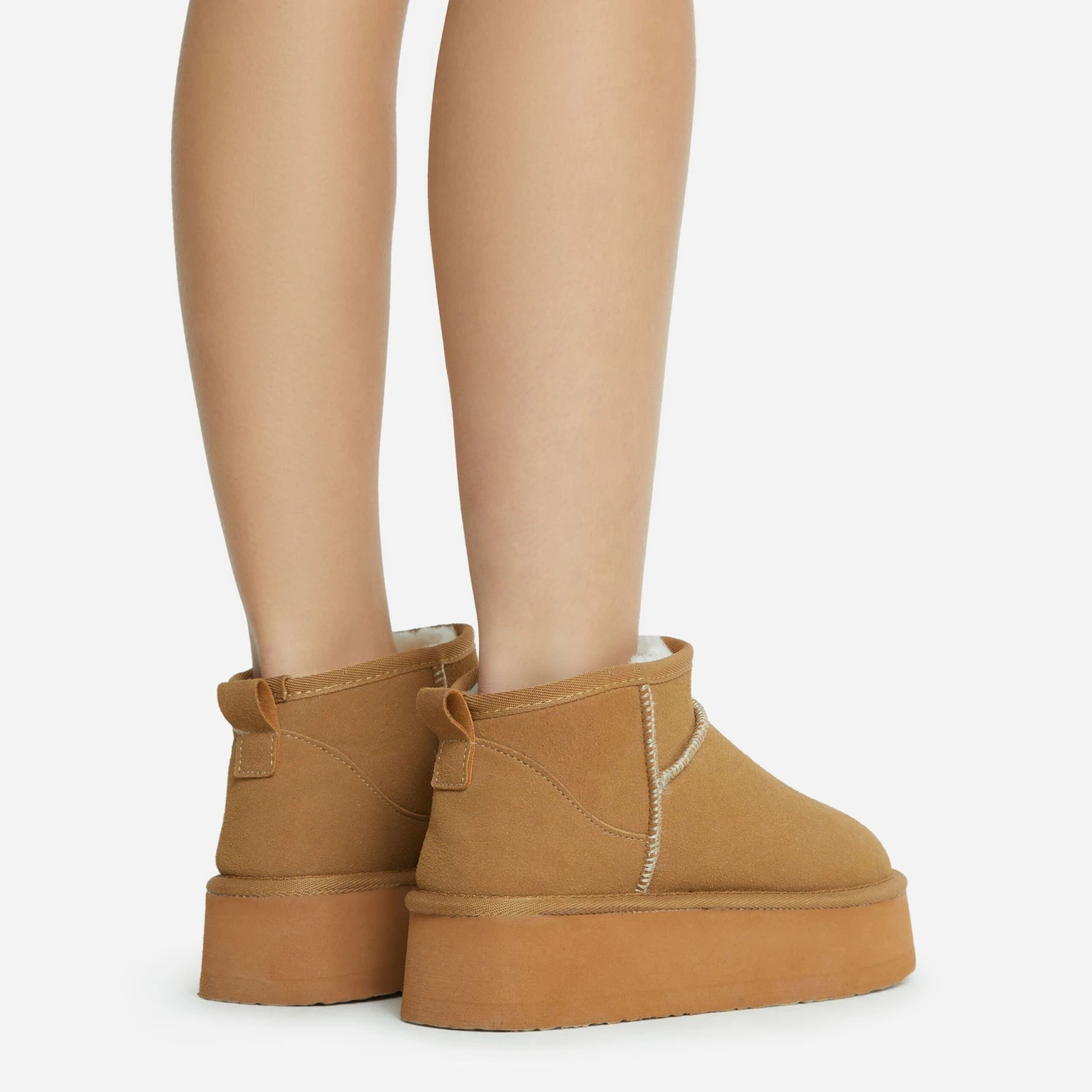 We are obsessing over our brand new A/W stock. Featuring a chestnut faux suede material, with faux fur lining, a platform sole and an ultra mini length.