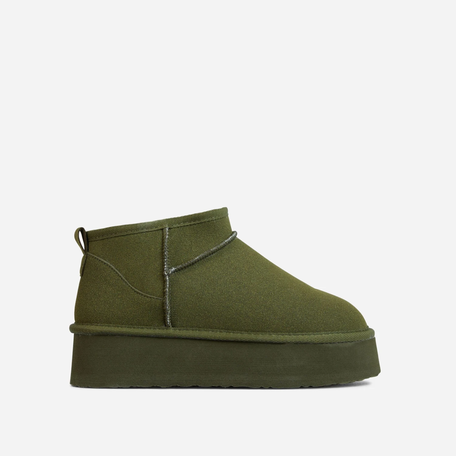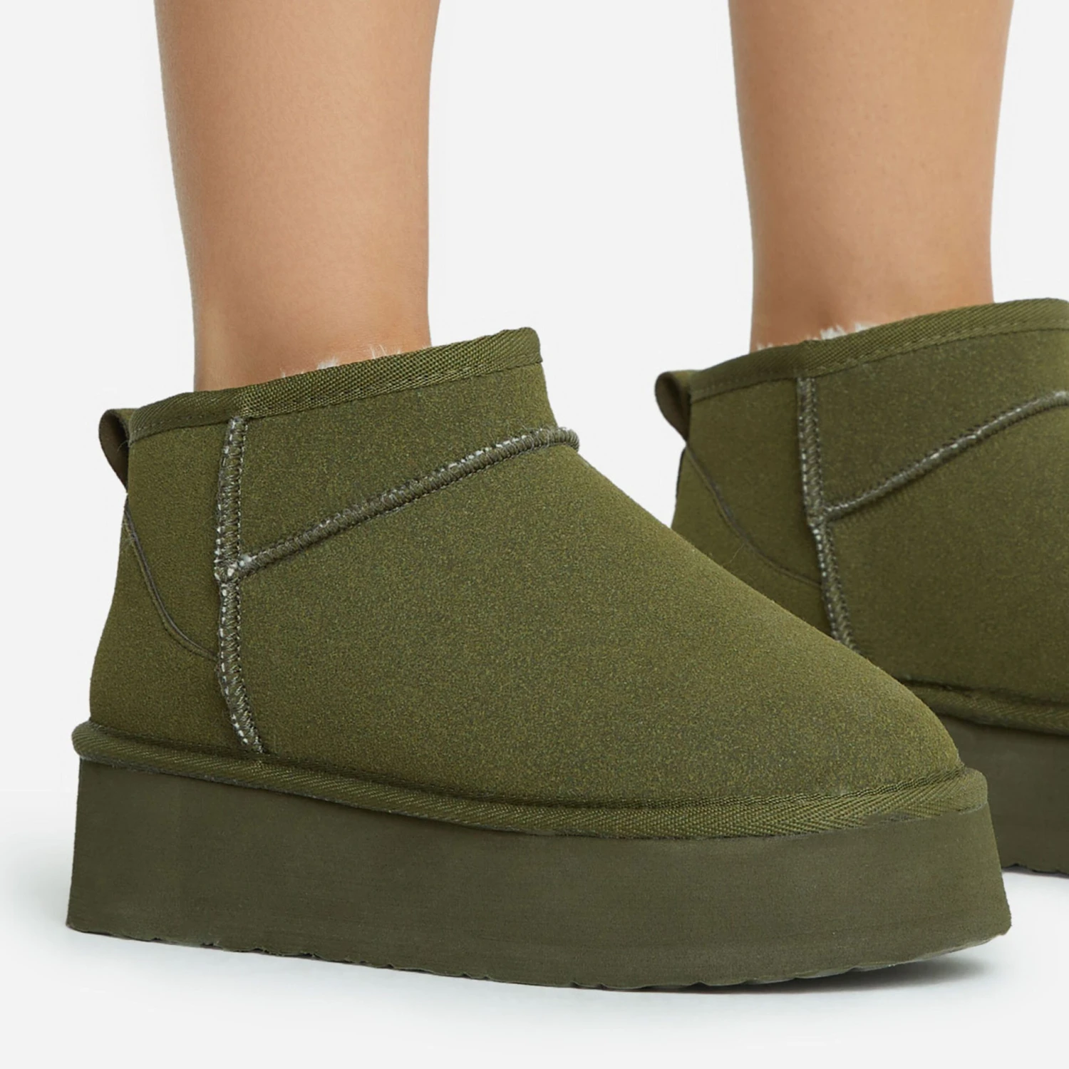 Get that ultimate blogger-worthy look with these new season boots doll. Featuring a khaki faux suede material, with faux fur lining, a platform sole and an ultra mini length.