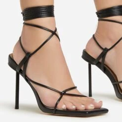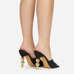 EGO Farah Ankle Strap Square Toe Gold Chain Heel In Black Faux Leather
