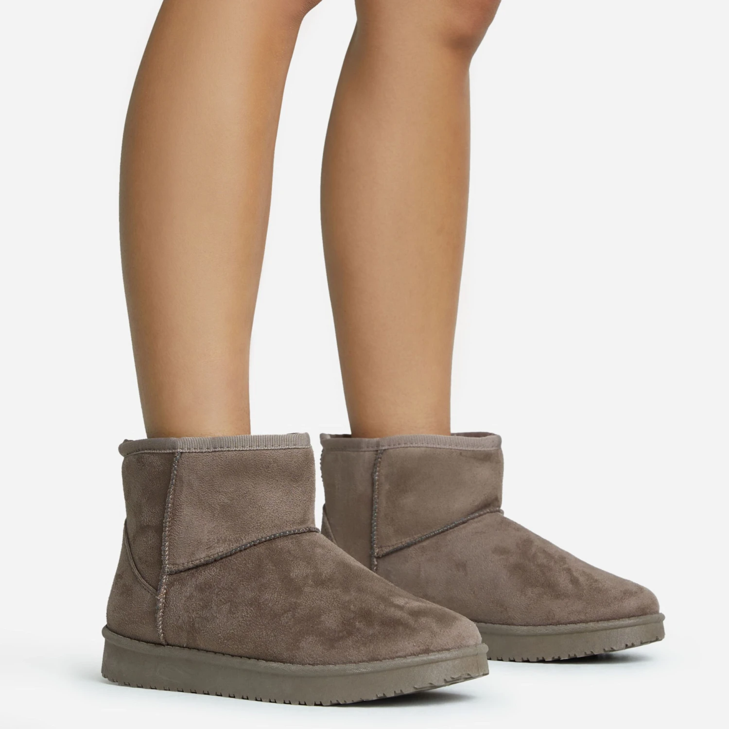 Get that blogger-worthy look everyone wants with these new season boots. Featuring a taupe brown faux suede material, with faux fur lining and an ankle length.
