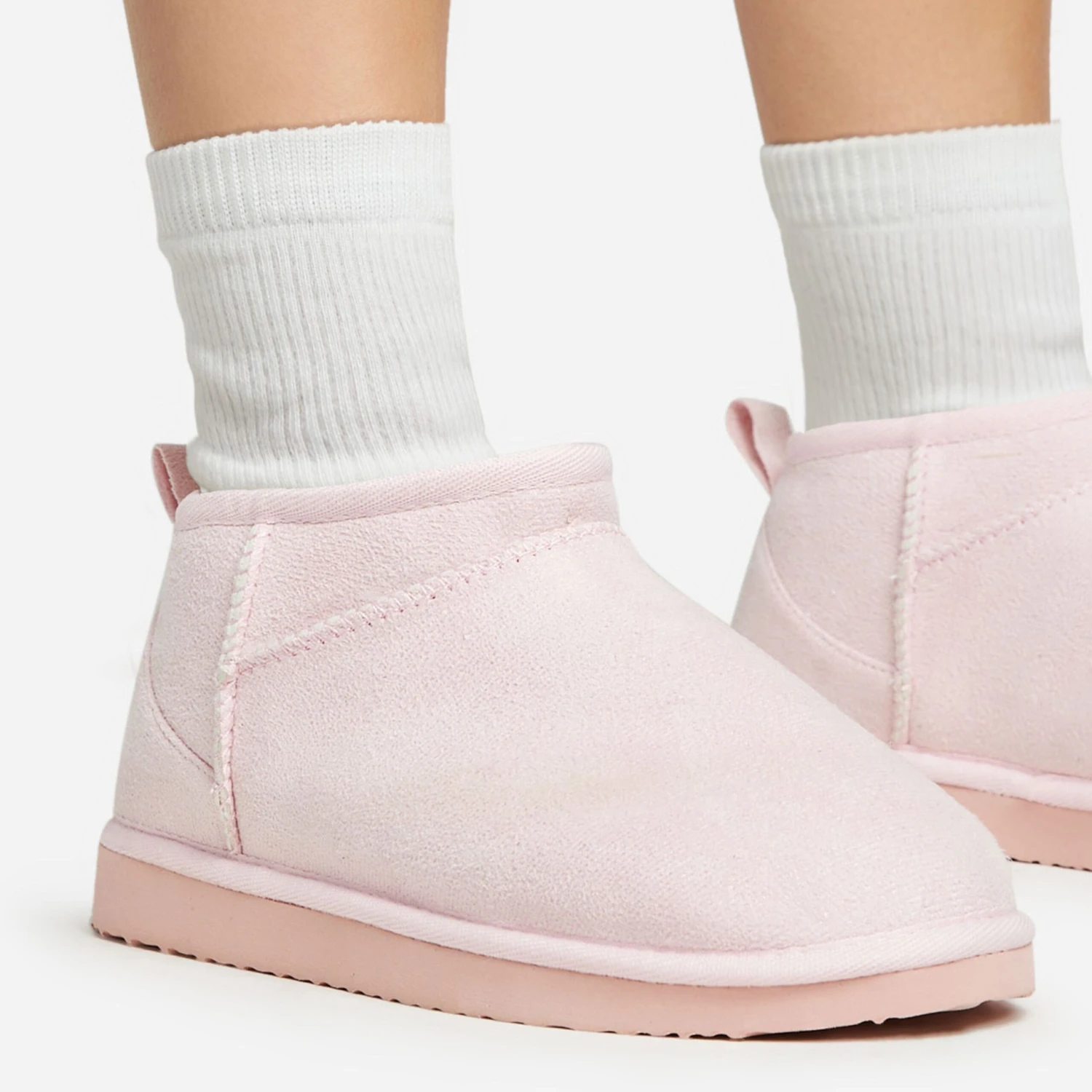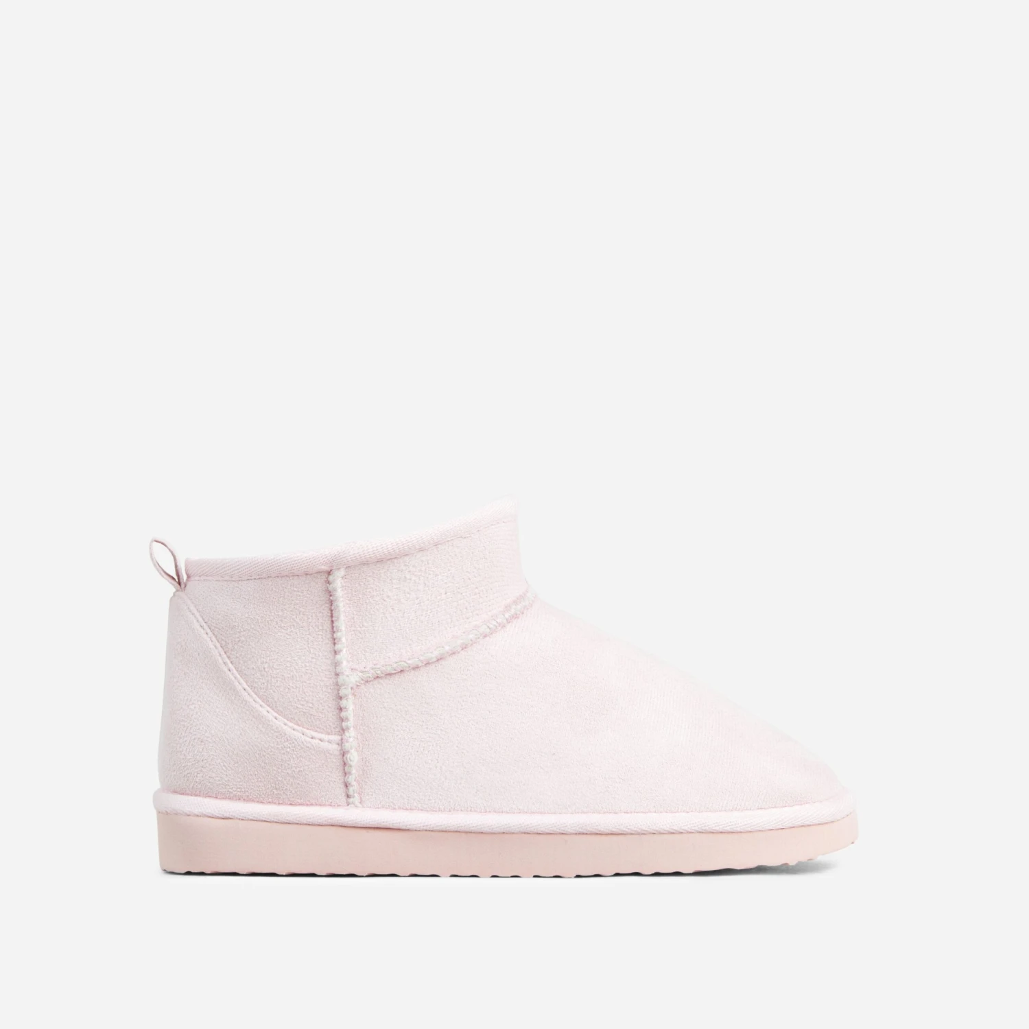 Add a boujee touch to your casual look doll. Featuring a light pink faux suede material, with faux fur lining and an ultra mini ankle length.