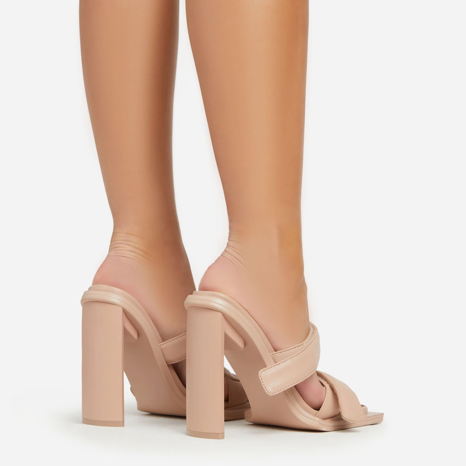 Work some dreamy neutrals into your new season shoedrobe with these mules. Featuring a nude faux leather material, a double velcro strap, a square toe and a thin curved block heel.