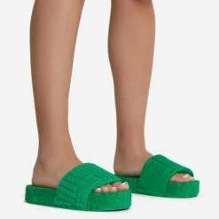 EGO Gotchu Flatform Slider Sandal In Green Terry Towel Fabric