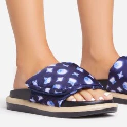 EGO Pillow-Talk Printed Velcro Strap Closed Toe Slip-On Flat Mule In Black Faux Shearling