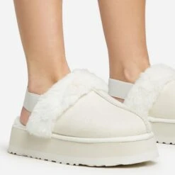 EGO Ivoris Closed Toe Flatform Slipper In Cream Faux Shearling
