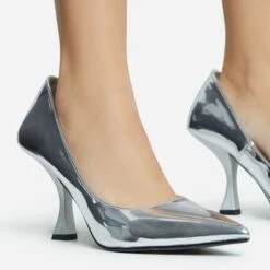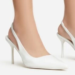 EGO Interlocking Diamante Detail Pointed Toe Slingback Court Heel In Silver Faux Leather
