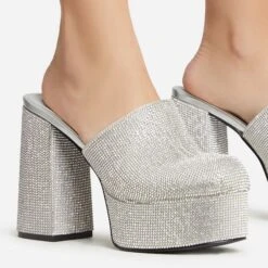 EGO Volvic Peep Toe Statement Platform Stiletto Heel Mule In Pink Metallic Faux Leather