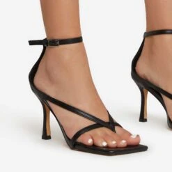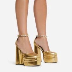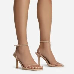 EGO Peggie Diamante Strap Open Square Toe Extreme Platform Block Heel In Nude Faux Leather