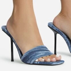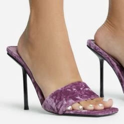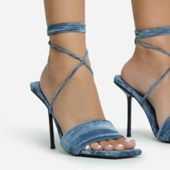 EGO Tour Lace Up Knotted Strap Cage Detail Square Toe Thin Stiletto Heel In Lilac Faux Leather