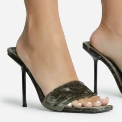 EGO Tour Lace Up Knotted Strap Cage Detail Square Toe Thin Stiletto Heel In Black Faux Leather
