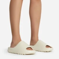 EGO Pillow-Talk Printed Velcro Strap Closed Toe Slip-On Flat Mule In Nude Faux Shearling