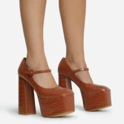 EGO Volvic Peep Toe Statement Platform Stiletto Heel Mule In Pink Metallic Faux Leather